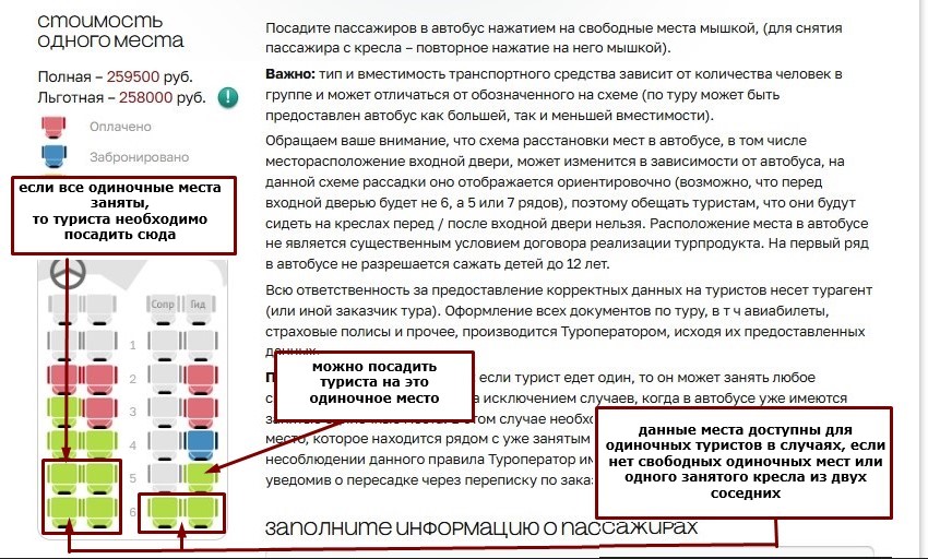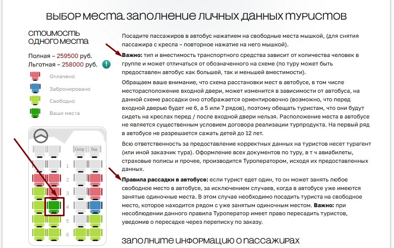 ВАЖНО: внимательно ознакомьтесь с информацией о принципах и правилах рассадки в автобусе.