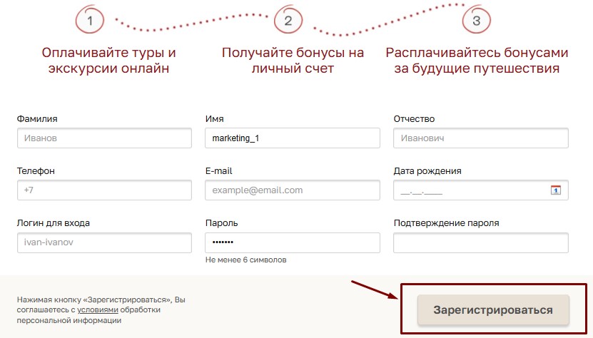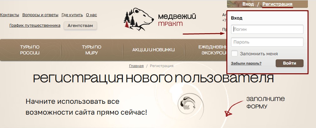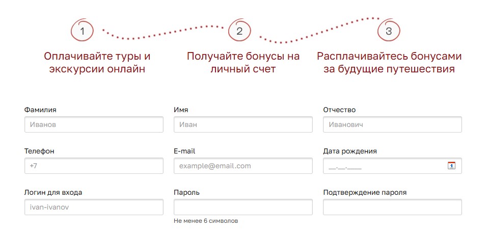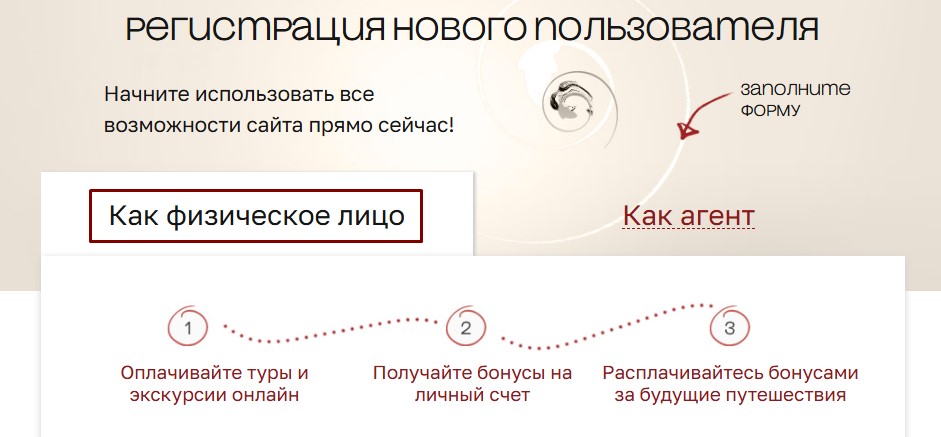 Регистрация на сайте Туроператора необходима для самостоятельного приобретения и оплаты тура/ов. Для регистрации нужно выполнить следующие действия: