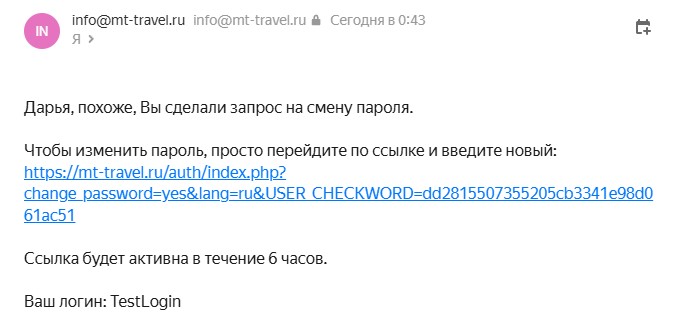 4. На электронную почту, указанную при регистрации, вновь будет отправлено оповещение об изменении пароля. Перейдите по ссылке, содержащейся в письме, чтобы завершить процедуру смены пароля. Авторизуйтесь, используя новые данные.