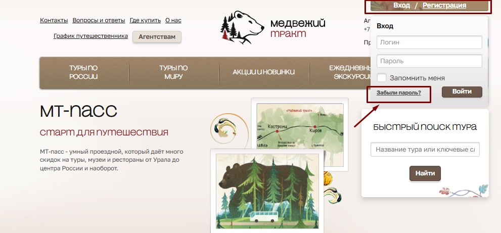 В случае, если Вы забыли Ваш пароль, введенный при регистрации, он подлежит восстановлению согласно следующей схеме: