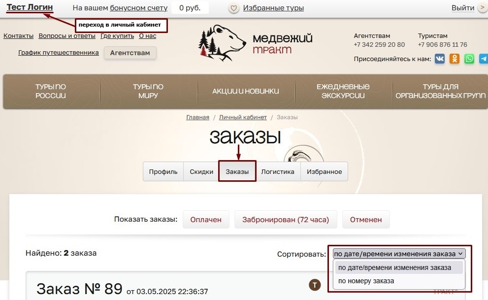 Вы всегда можете вернуться к Вашему заказу, произвести его проверку и редактирование, перейдя в Личный Кабинет (раздел "Заказы"):