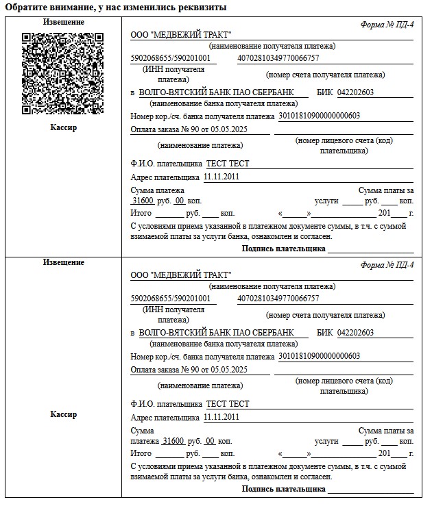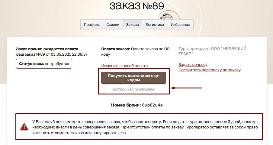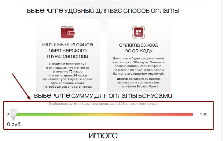 Обращаем Ваше внимание, что квитанция на оплату выгружается автоматически при бронировании, поэтому, как правило, она сформирована на полную стоимость заказа. При оплате необходимо самостоятельно скорректировать сумму в банковском приложении - вычесть размер бонусов из общей суммы в квитанции.