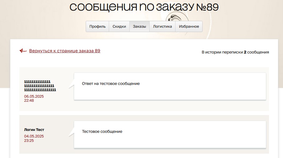 2. В разделе "Заказы" найти нужный заказ и открыть переписку по заказу;