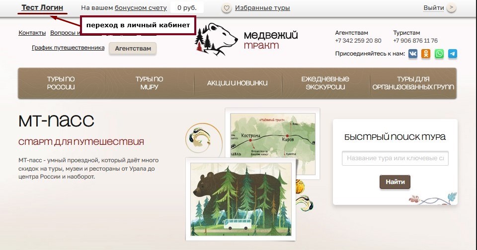 "Бонусная программа" - это специальная система поощрения постоянных клиентов. Для участия в бонусной программе необходимо зарегистрироваться на сайте Туроператора, произвести бронирование тура через Ваш Личный Кабинет, оплатить его наиболее удобным способом и совершить поездку с «МЕДВЕЖИЙ ТРАКТ», «Я-Туроператор» или «ЯТО».