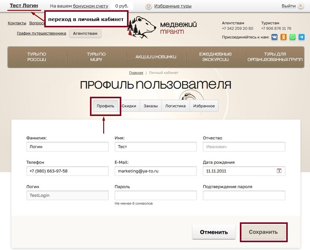 Поздравляем! Вы успешно зарегистрировались на сайте Туроператора и
