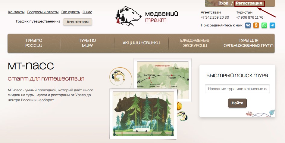 Для приобретения тура самостоятельно Вам необходимо зайти на сайт Туроператора -www.mt-travel.ru и пройти процедуру регистрации: